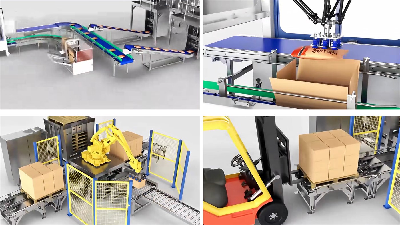 覆盖“开箱 -> 顶面贴标 -> 机械手装箱 -> 侧面贴标 -> 封箱”全环节,实现纸箱包装的双位置贴标与精准装箱一体化作业。