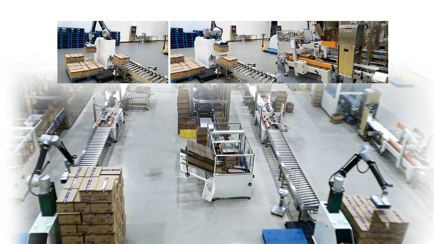 集成工业机械臂、智能分拣设备与输送系统,主要用于包装成品或纸箱的智能分拣、精准装盘、栈板码垛及后段转运。